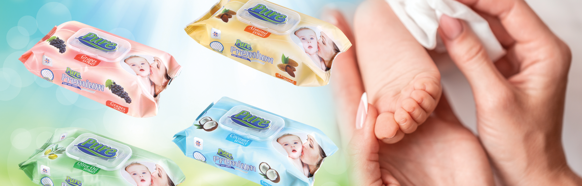 PURE SOFT Servetele umede pentru copii cu capac 120 buc mix