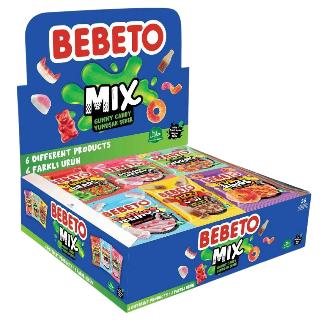 BEBETO Mix 18g – Cutie 36 Bucăți, 6 Arome Asortate (Ursuleți, Cola, Fructe, Inimi)