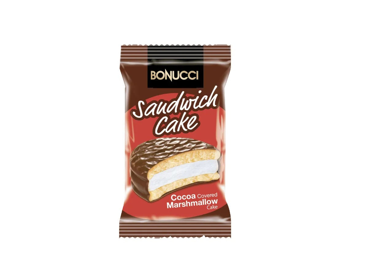 Bonucci Sandwich Cake – Prajitura cu blat de vanilie, glazura de cacaocrema marshmallow 23g x 24 x 2bucati