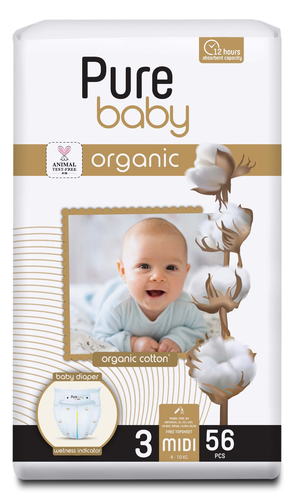 PURE BABY Organic scutece Nr. 3, 56 buc