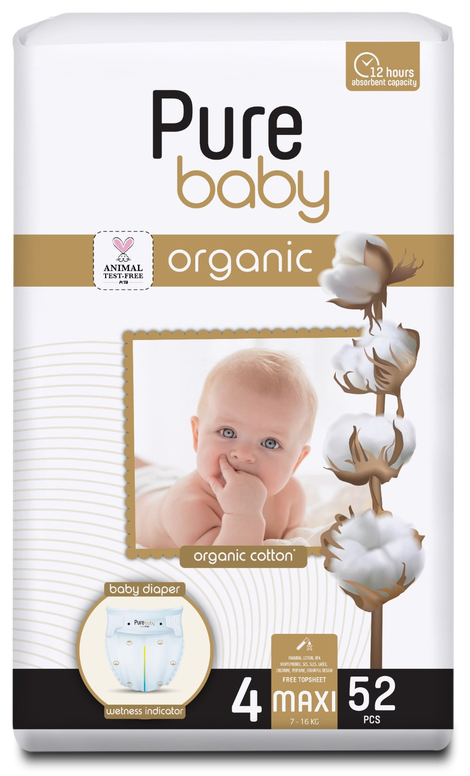 PURE BABY Organic scutece Nr. 4, 52 buc