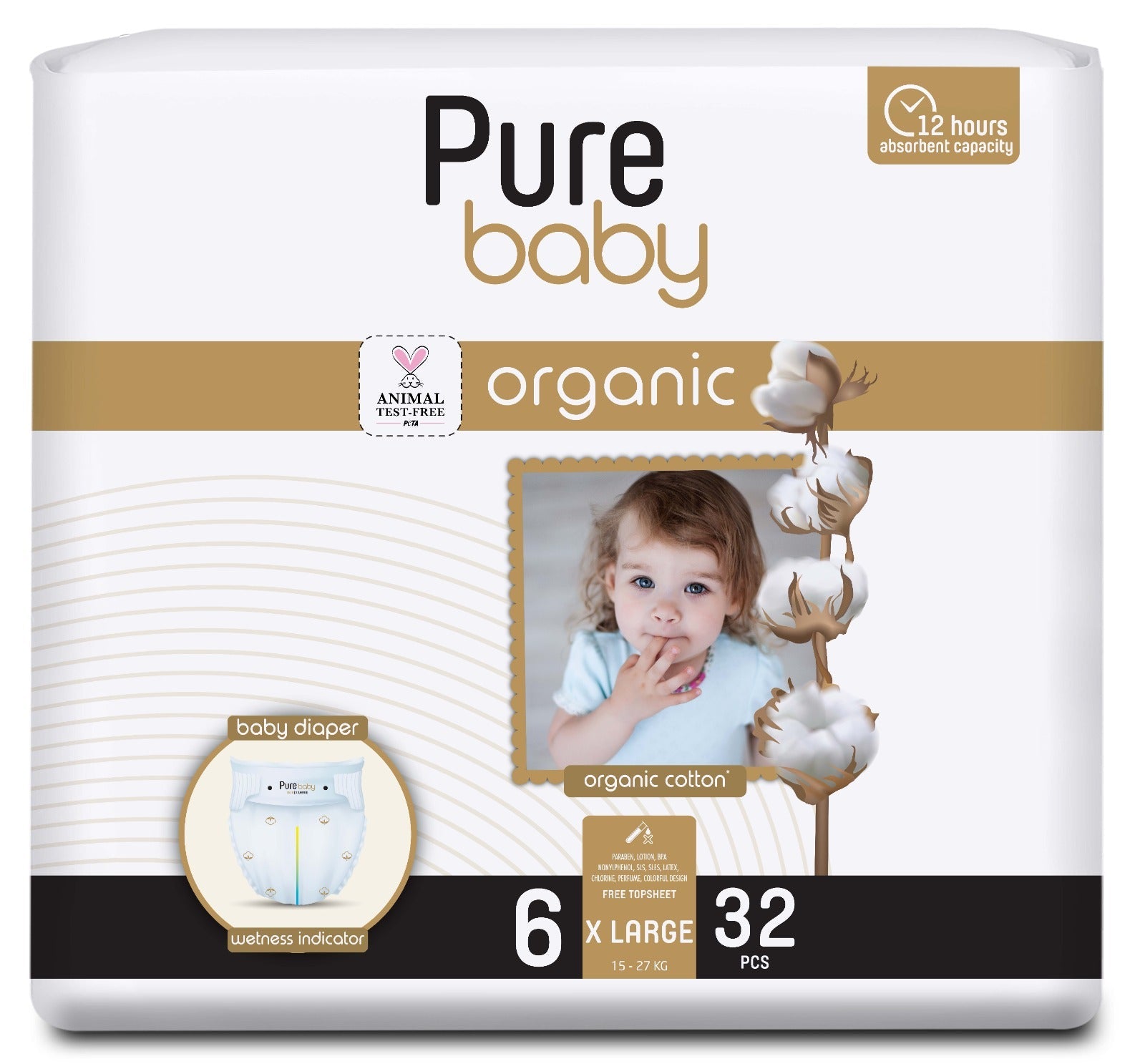 PURE BABY Organic scutece Nr. 6, 32 buc