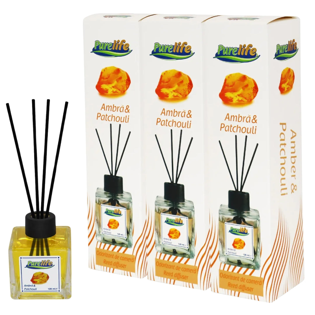 PureLife Set 3 x Odorizant de cameră cu bețișoare PureLife – Ambra – 120 ml