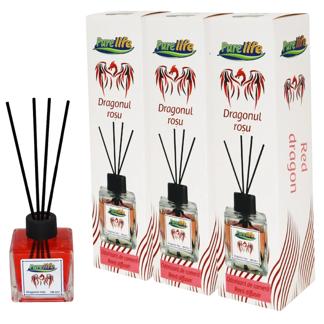 PureLife Set 3 x Odorizant de cameră cu bețișoare PureLife – Dragonul Roșu – 120 ml
