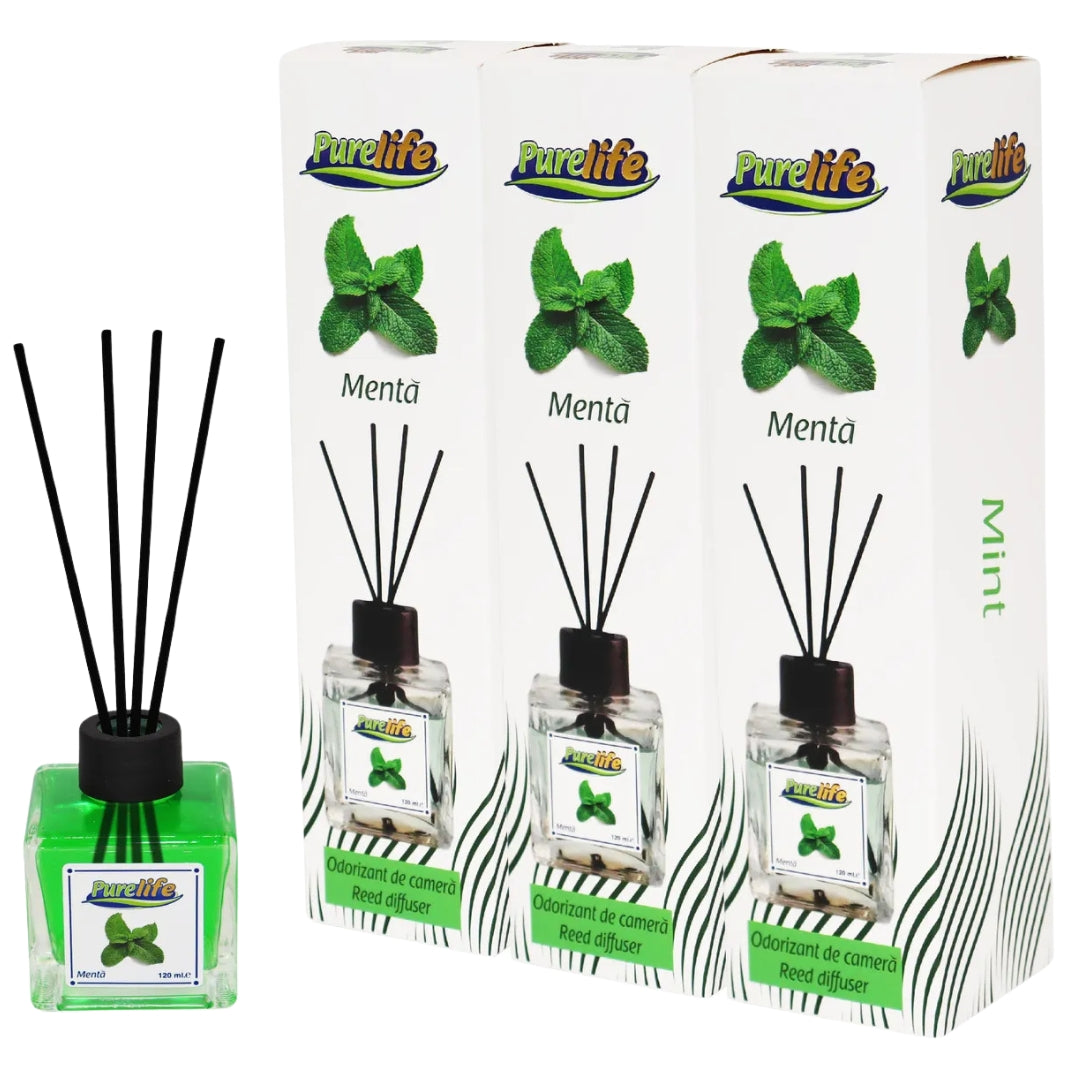 PureLife Set 3 x Odorizant de cameră cu bețișoare PureLife – Mentă – 120 ml