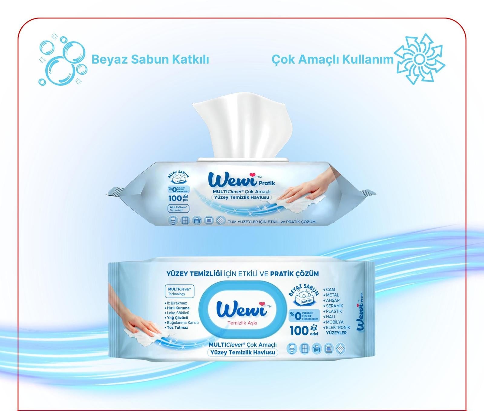 Servetele umede pentru suprafete multiple, 100 bucati, Wewi
