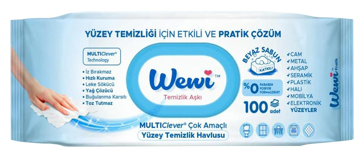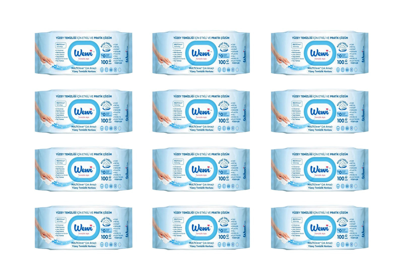 Set 12 pachete Servetele umede pentru suprafete multiple, 100 bucati, Wewi