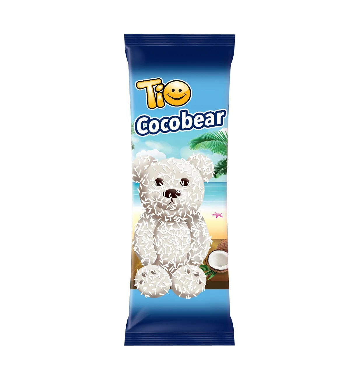 TIO COCOBEAR – Prajitura ursulet cu glazura de ciocolata alba si fulgi de cocos 50g x 24 bucati